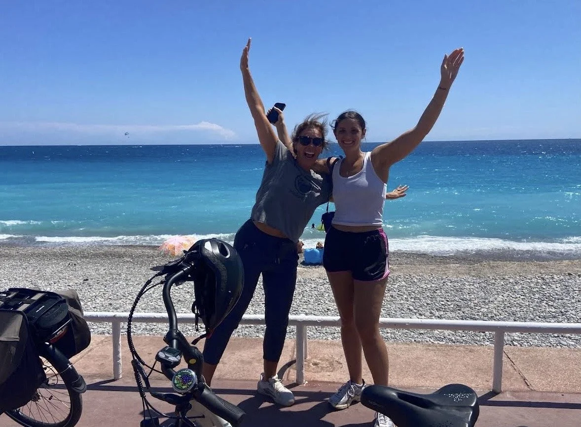 The route starts in Nice and follows a mix of cycle paths, roads and gentle climbs, with open views and regular pauses to enjoy the surroundings.
