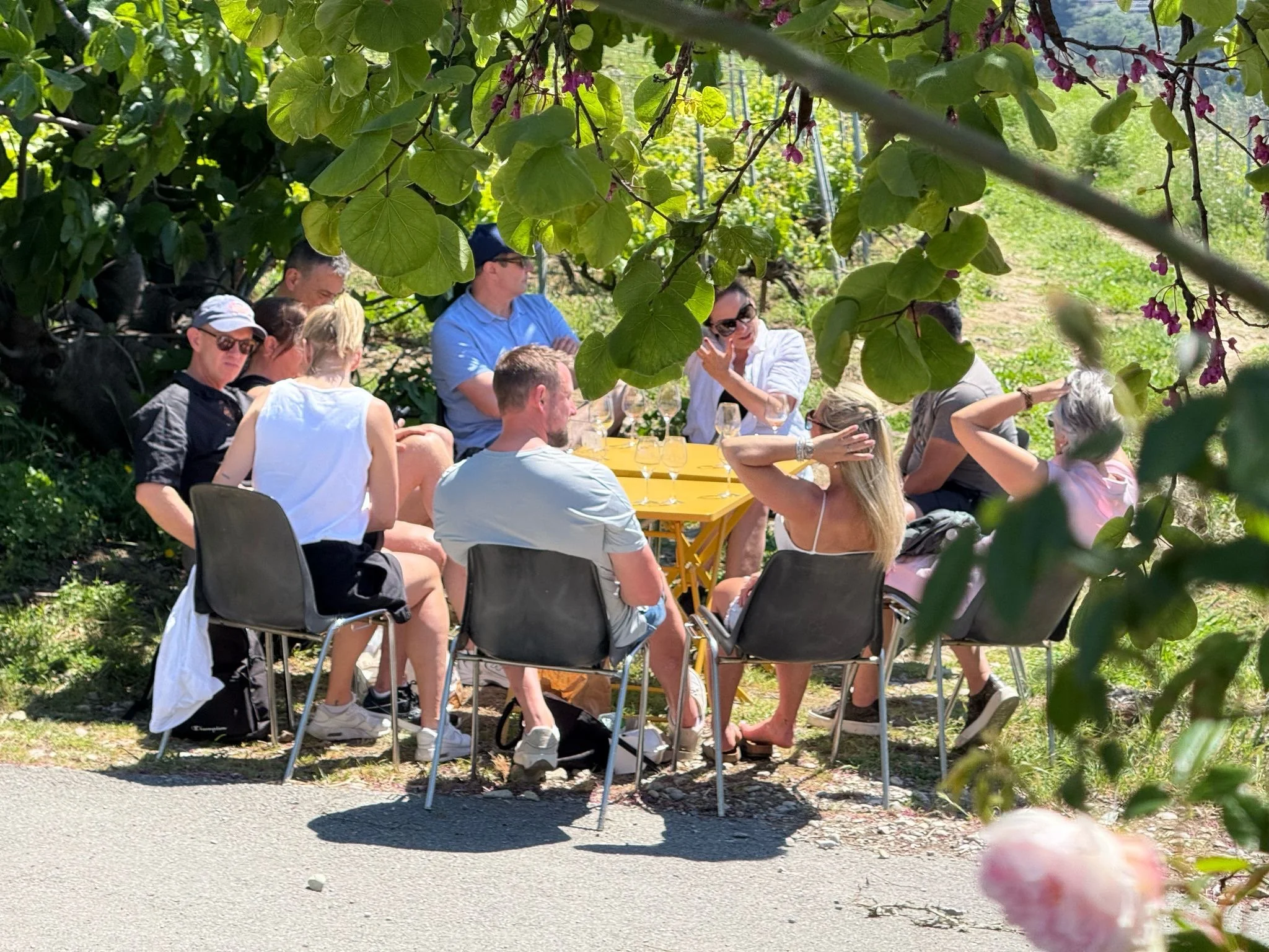 After arriving at the vineyard it’s time to enjoy a wine tasting. Then we slow down and enjoy lunch al fresco, seated under the fig tree in the shade.